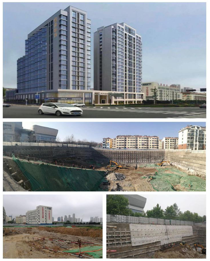 黃海·鉑寓基坑支護工程,場區位于青島市黃島區蕭山路以東、珠江路以北,基坑開挖深度為10.90-14.90米、周長約330米。本工程采用鋼管樁+預應力錨桿+肋梁支護方式。