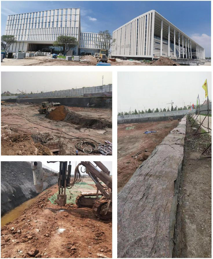 膠州臨空區服務中心基坑支護、抗浮錨桿工程,場區位于膠州市站前大道,基坑開挖深度為4.30-9.10米、周長約1200米。本工程支護結構采用復合土釘墻支護方式。